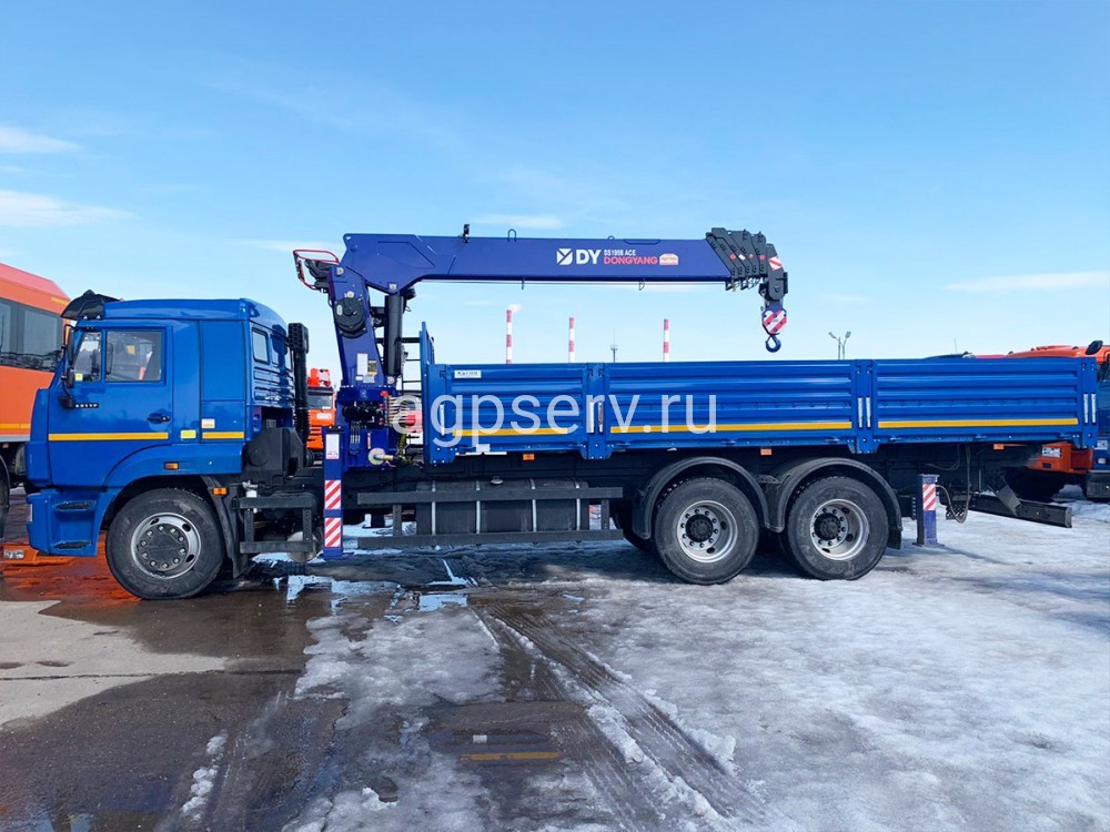 Автомобиль бортовой 438230, основанный на шасси Камаз 65117-3010-48 и оснащенный краном манипулятором (КМУ) Dong Yang 1956 - это надежное транспортное средство с отличными техническими характеристиками и грузоподъёмностью.