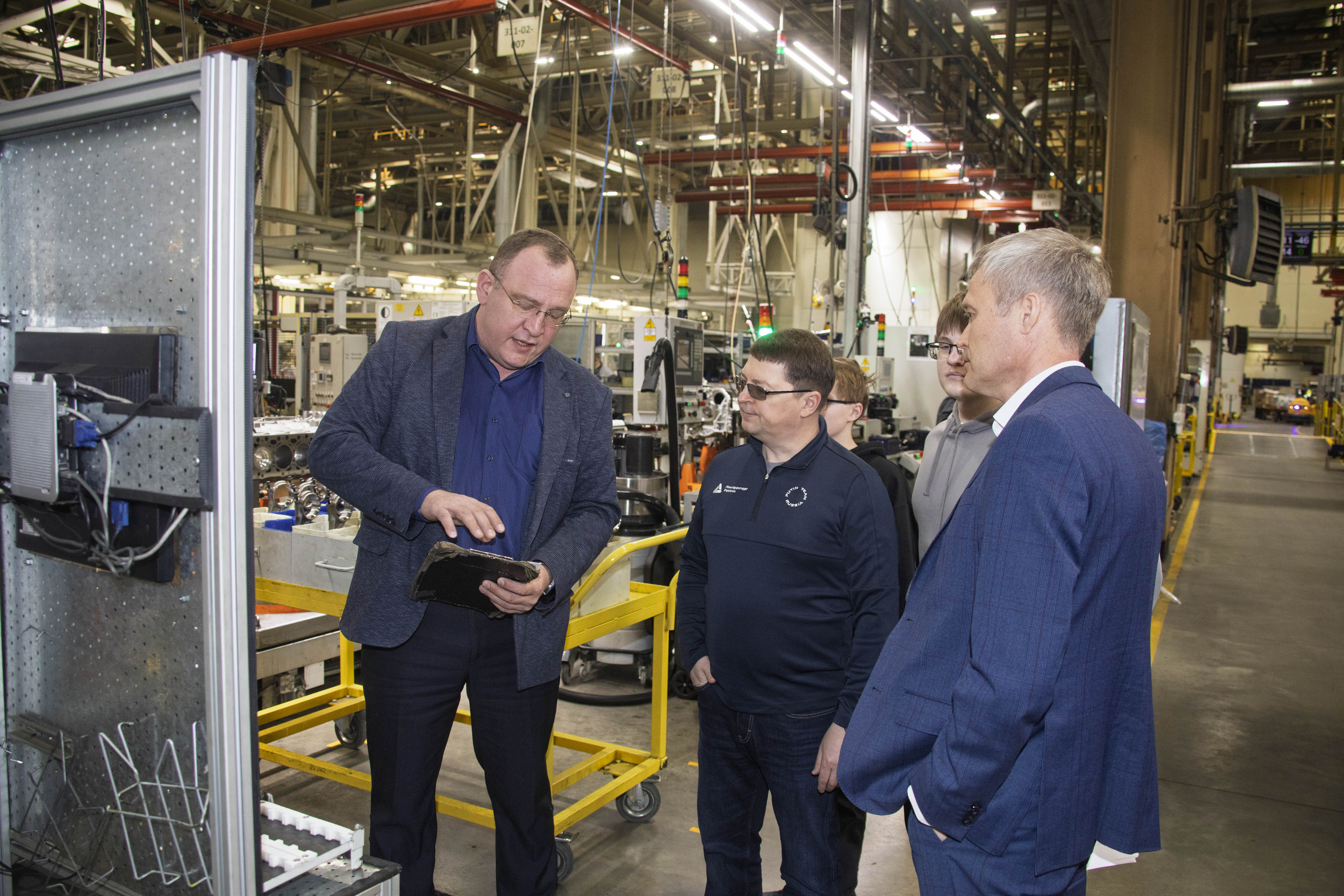 Деловой программой была предусмотрена ознакомительная экскурсия по подразделениям автогиганта, которая началась с посещения АО «КАМА ДИЗЕЛЬ», где гостям продемонстрировали современные конвейеры по сборке двигателей. На автомобильном заводе Николай Еланцев ознакомился с работой главного сборочного конвейера и конвейера сборки кабин автомобилей КАМАЗ.